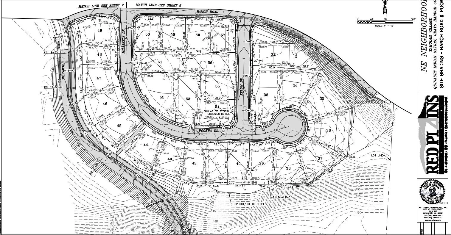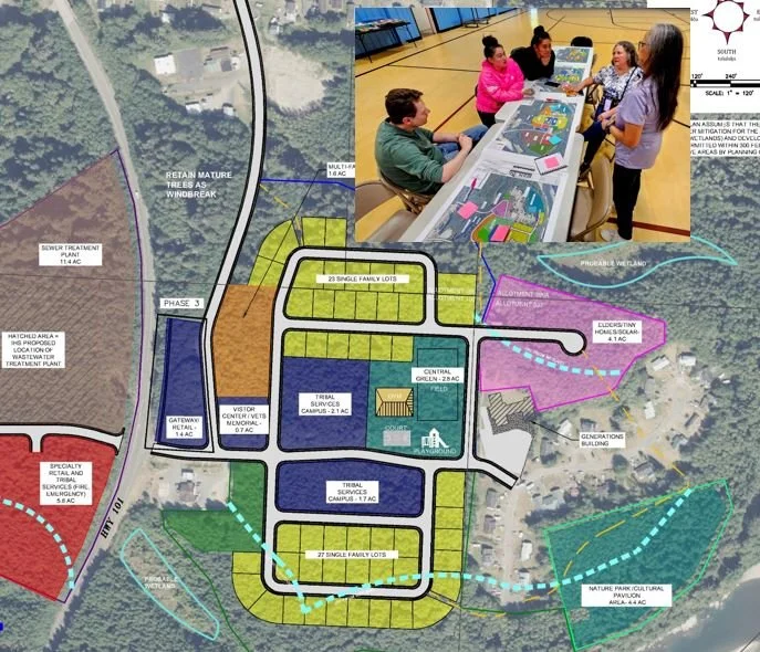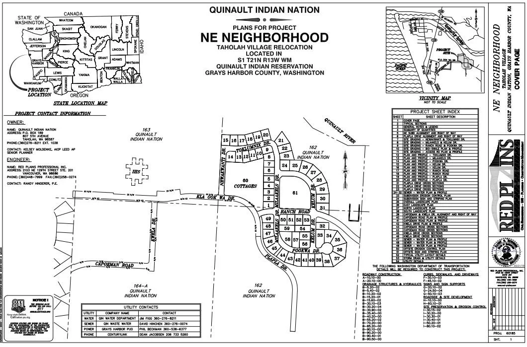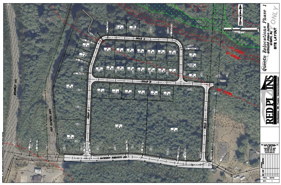 Located on the Pacific Northwest coast among the lush rainforests of Washington State’s Olympic peninsula, the Quinault Nation faces unique challenges due to climate change and rising sea levels. Red Plains has been privileged to support the Nation’s coastal village relocation efforts, a critical initiative aimed at safeguarding the community from the threats of sea level rise and tsunamis. Our current staff played a key role in the Taholah Village Phased Master Plan (2016-2017) and are now leading the development of the Queets Village Relocation Phased Master Plan (2024-2025). Strategic additions to our Planning, Engineering, GIS and Construction Management Departments have furthered our capacity to aid communities in master planning, even employing the primary author and planner responsible for the original Taholah Village Master Plan.