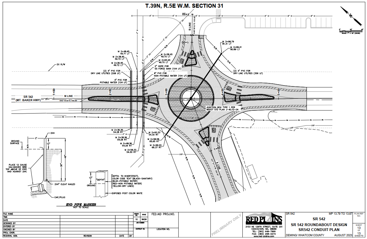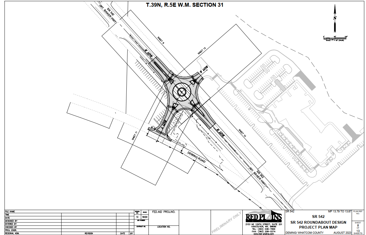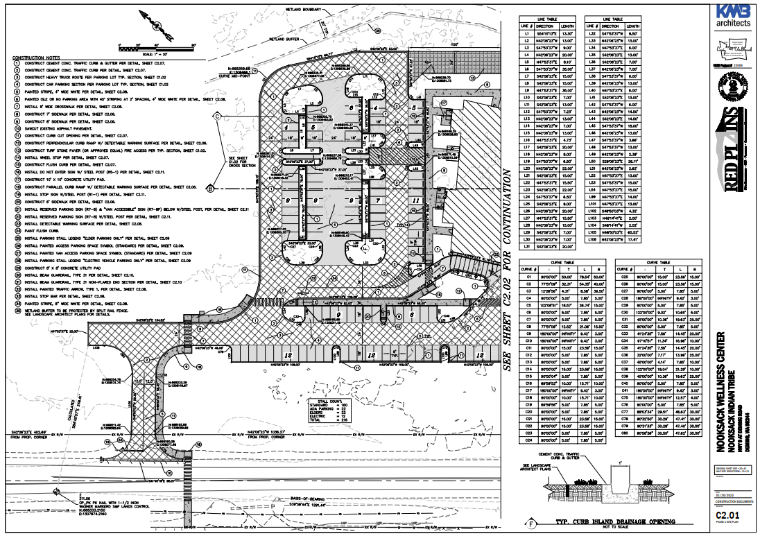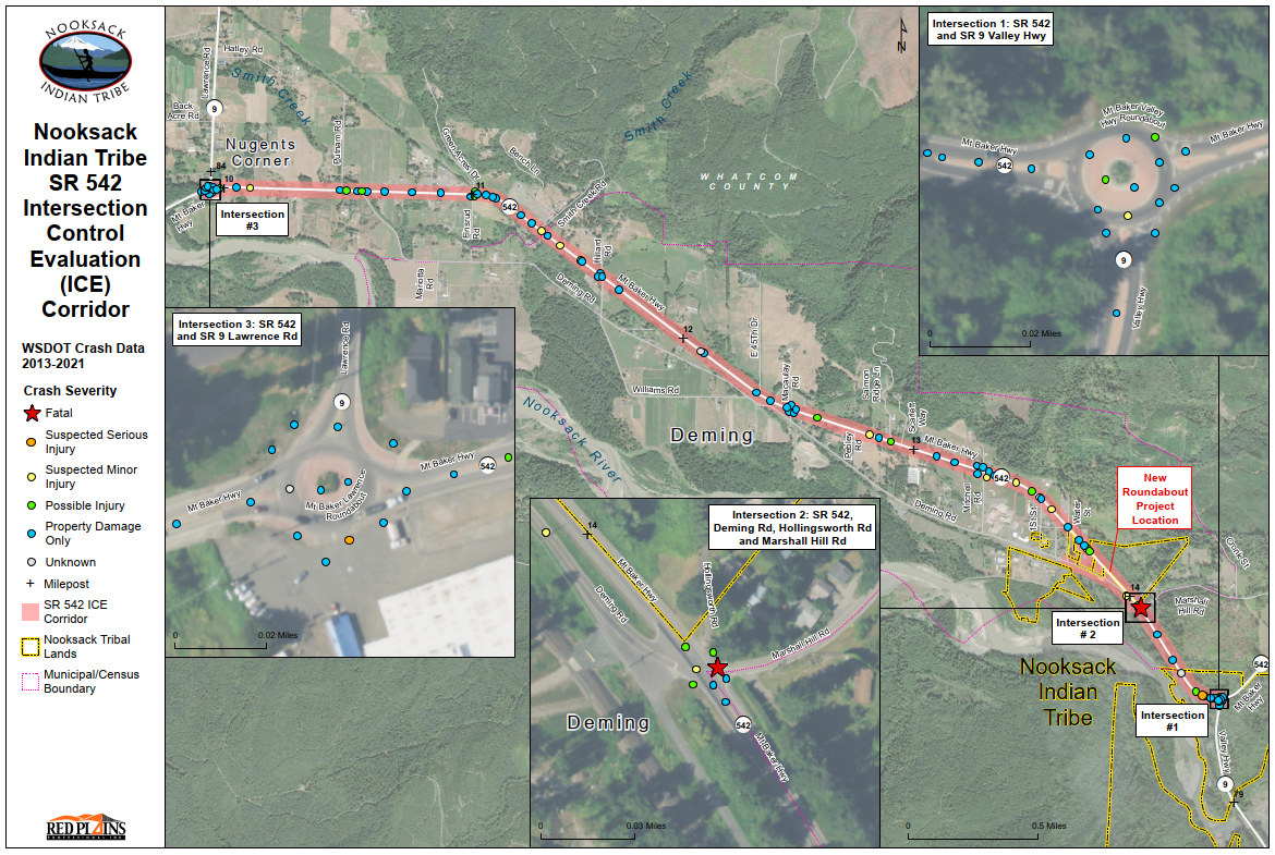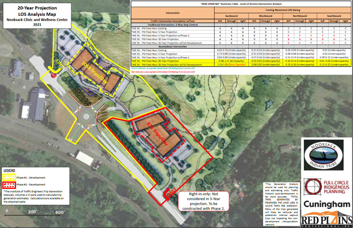 We worked to support the Nooksack Tribe in their development of a much needed regional medical center in Deming, WA. Red Plains was contracted directly by the Tribe and also as a subconsultant to KMB Architects for various components of the project to include: GIS-driven site investigation, preliminary planning, strategic environmental planning and NEPA (with our partner Adesa), traffic impact analysis with completion of the WSDOT Intersection Configuration Evaluation (ICE) Report, design of the resulting traffic calming roundabout on SR 542 Mt. Baker Highway coordinated with WSDOT’s Corridor Safety Plan, site transportation design to include interior streets and parking lots, County parking space analysis, and site design to include grading, stormwater, and utility design. This project paralleled other transportation related projects such as updating the Tribe’s comprehensive Long Range Transportation Plan, Roadway Inventory Update, Transportation Safety Plan, and Tribal Transportation Improvement Program. The rendering (1st image below) was developed by KMB Architects and it represents the proposed Nooksack Health Clinic.